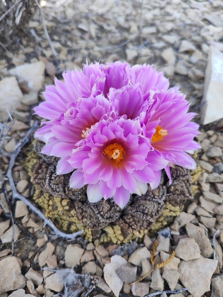 The Living Rock cactus (Ariocarpus fissuratus) is another rare plant found in relative abundance on our land. They are hard to spot but usually where there is one there are many. In the fall/winter, those hillsides will be specked with their blooms.